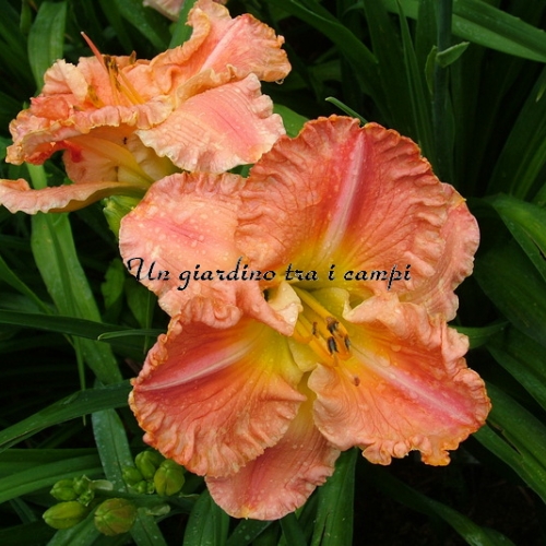LONNIE LEROY CARPENTER è una varietà incredibile, dal fiore gigantesco! I primi fiori superano abbondantemente i 20 cm di diametro, la consistenza del fiore è carnosissima e piuttosto spessa, il colore è un pastello - rosa molto ricco di riflessi, la forma rotondeggiante con un orlo molto ampio, decisamente un' altra dimensione rispetto al solito mondo delle hemerocallis.