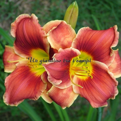 GENEVA FIRETRUCK è un interessante variante di rosso realizzata da Dan Hansen. In particolare il bordo esterno piuttosto cospicuo risulta color burro. Per chi vuole inserire il rosso in giardino in mezzo ad altri colori curando particolarmente gli accostamenti, questa colorazione da moltissime possibilità per legare colori spesso non troppo felici assieme al rosso.