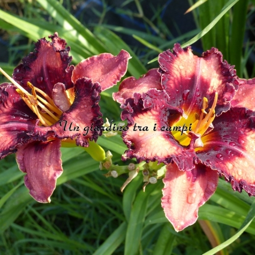 BLACK CHERRY BLUES è una cultivar che dimostra quali ulteriori miglioramenti possano essere effettuati con l'ibridazione. L'intensità del colore, la forma, la consistenza del fiore, l'insieme dei riflessi e il fantastico bordo sono un gran biglietto da visita. La pianta già bella nei primi anni, una volta assestata ha dato origine a fiori magnifici.