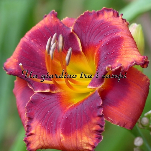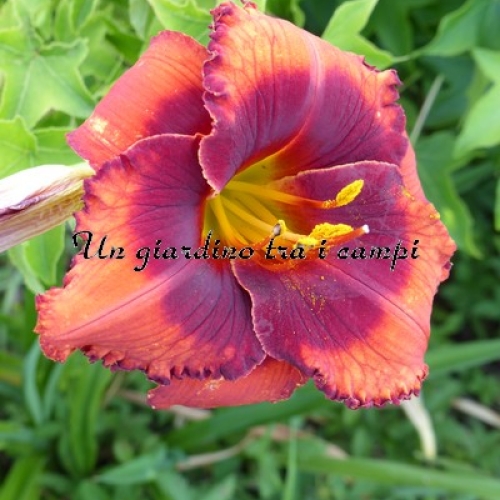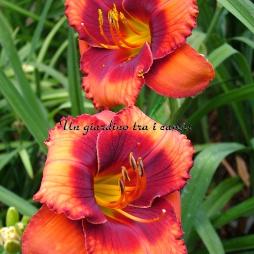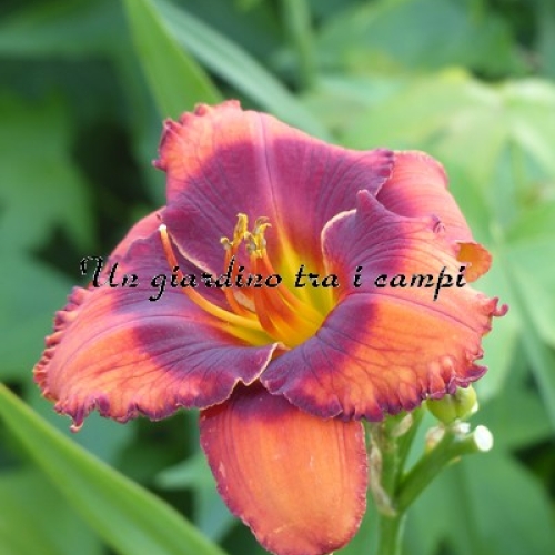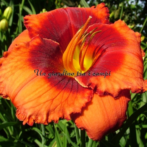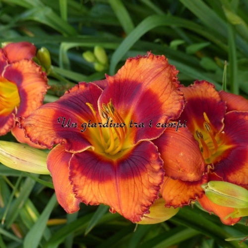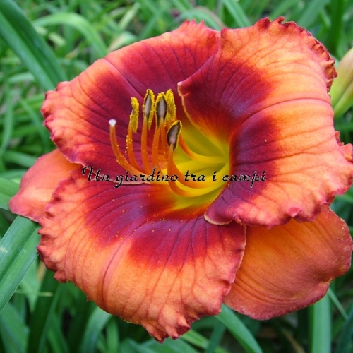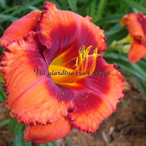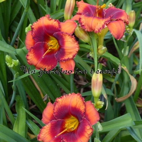 ORANGE CITY è una varietà arancio con occhio rosso arancio ancor più intenso. In pratica si tratta di un colore brillante stampato su un colore brillante, tanto da essere stupefacente come effetto visivo. Non facile da riprodurre in foto. I risultati degli incroci effettuati nel 2007 e fioriti nel 2009 sono stati superlativi: è un grandissimo genitore per quanto riguarda occhi brillanti (con doppia dose di colore) in colorazioni rosse, scure e brillanti in genere su colori di base di qualsiasi tonalità.