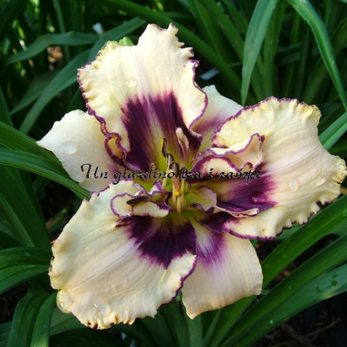 STRIKINGLY DRAMATIC è una forma inusuale molto spettacolare sia per la forma stessa del fiore che per i colori crema-bianco di base con occhio porpora viola molto sagomato.