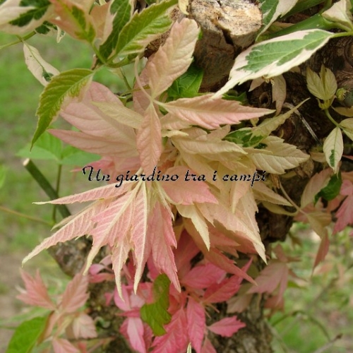 Varietà di Acer negundo molto appariscente per il colore della marginatura rosa, crema e salmone. Può essere allevata ad albero o a grande cespuglio. Per macchie e gruppi anche in pieno sole. Consiglio forti potature a fine inverno per avere vigorosi getti ricchi di colore.