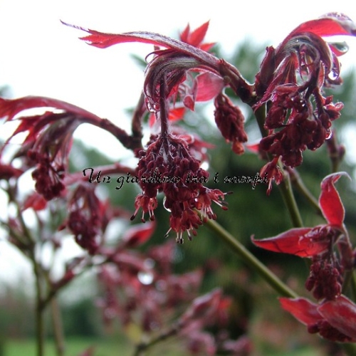 Fogliame rosso porpora cupo e brillante in primavera con notevoli infiorescenze. Colore un pò meno brillante in estate ma rosso costante e rosso arancio in autunno.