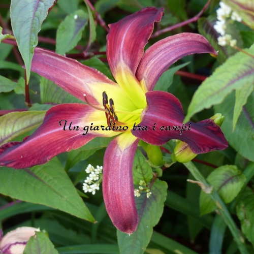 ALIENS IN THE GARDEN è un fiore spettacolare per il suo colore rosso rubino vellutato che a volte presenta al centro un pattern variabile e per la bellissima forma stellata. Fantastico in giardino.