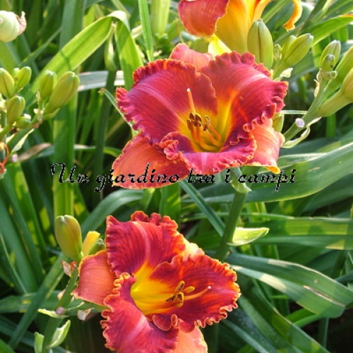 JOHN PELHAM is a ruffled bicolor from Spacecoast Starburst breeding. It is very elegant, low growing and take a touch of class in every garden.If leaved undisturbed it make a lot of blooming.