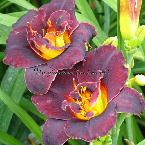 VOODOO DANCER is a double variety dark brown, almost black, incredibly resistant to the sun. In the afternoon, but the flower is even much better than in the morning as the petals open wide to give a glimpse of their base brilliant yellow gold areas. Excellent plant vigorous and rapid increaser of the fans and, definitely, one of the best doubles on the market.