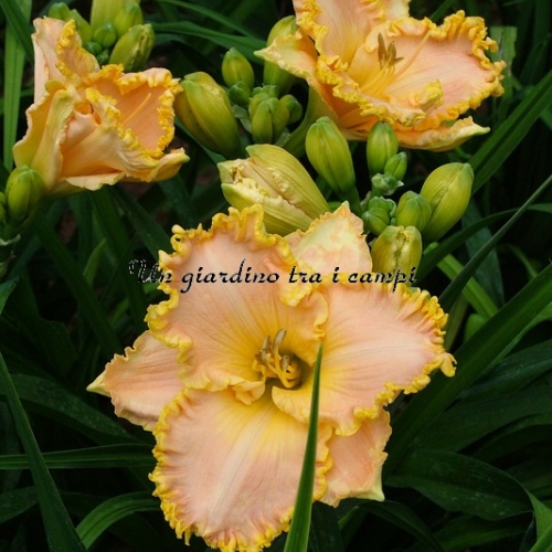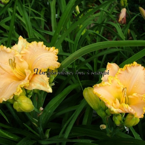 GOLDEN TENTACLES, despite the golden color is the result from two rose. In fact, the flower is often presented as polychrome, which varies depending on the day, in between the gold and pink, but mostly keeps the board full of tentacles and profusioni gold in size often substantial. A floriferous and very strong plant.