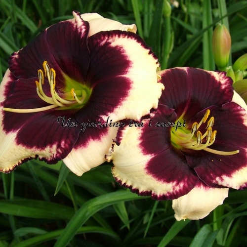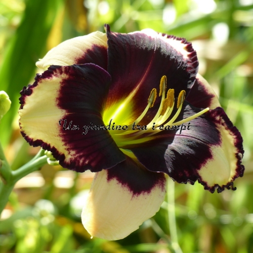LEDGEWOOD'S GABRIELLE is a wonderful example of a black eye on a basic almost white color. Plant very vigorous and floriferous, my plant in a couple of seasons has become a clump: blooms daily with 10-13 flowers open simultaneously. Flowering period rather prolonged.