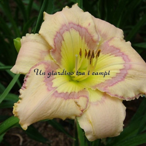 LAST SONG is a singular cultivar. The triangular eye and the iridescent throat are the main features that set this one apart from other new patterned daylilies.