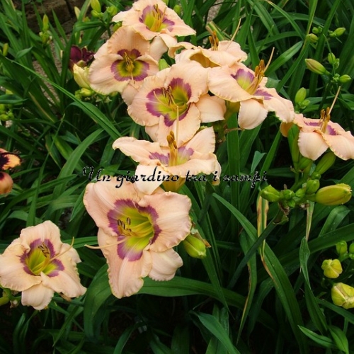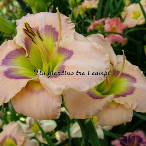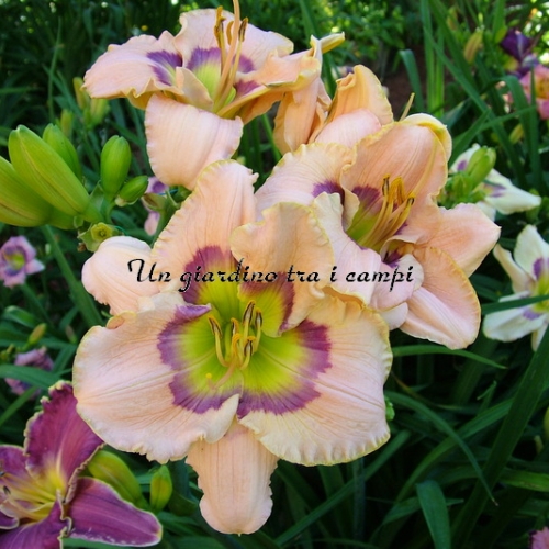 ROYAL ART is a fine creation of Mort Morss in patterned eyes near blue. Basic color of the flower is cream with an amethyst-violet reflections while the eye is markedly violet blue. The plant is vigorous and scape are monumental, despite the high bud count the branching structure has a well-defined architecture and important as to become a focal point even without flowers.